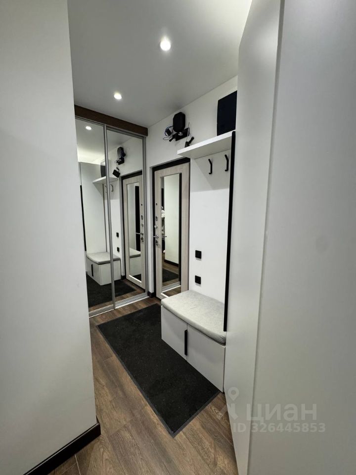 Прихожая со шкафом купе 2 секции, шкаф угловой и тумба, плюс вешалки-крючки на входе. Видео звонок на двери квартиры.