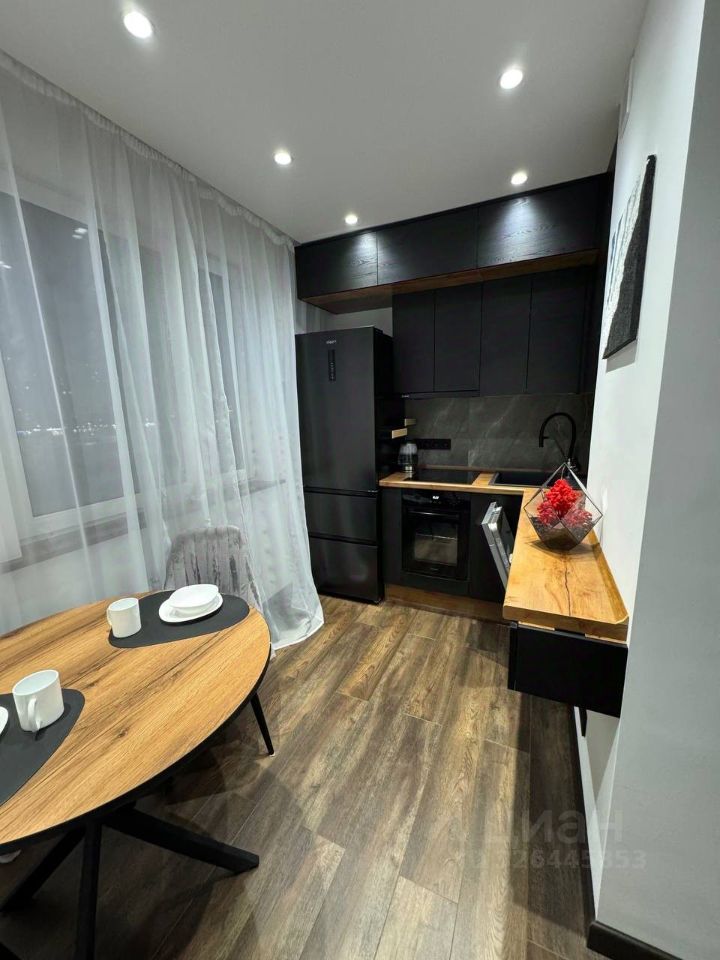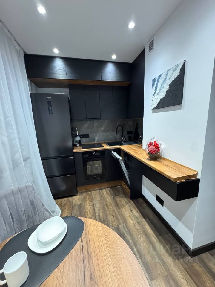 Оборудованная кухня (плита индукция, посудумойка, духовка, холодильник, чайник, микроволновка, вытяжка). Окна квартиры выходят на пруды с фонтанами.