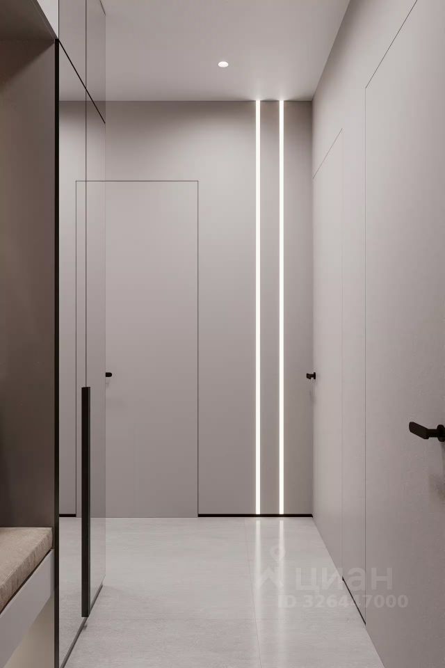 Квартира выполнена по современной открытой планировке с панорамным остеклением от пола до потолка, обеспечивающим беспрецедентный уровень естественного освещения и эффектные виды на город. Внутреннее пространство организовано по принципу свободной планировки, что позволяет гибко зонировать площадь под индивидуальные потребности. Отделка выполнена по стандартам бизнес-класса с использованием высококачественных материалов, установлена встроенная техника и система умного дома.