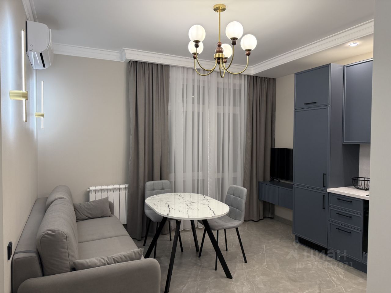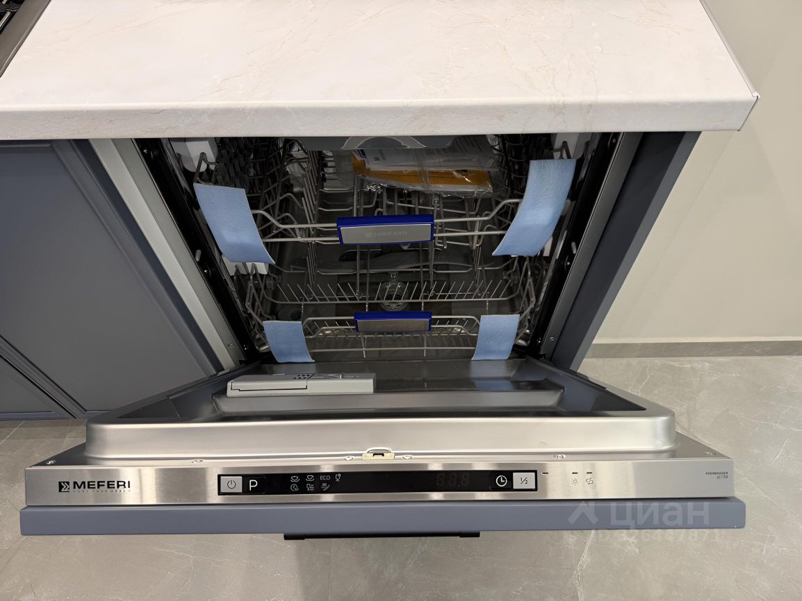 В квартире есть вся необходимая мебель. Установлена современная техника: кондиционеры, холодильник, посудомоечная и стиральная машины, а также телевизор. Планировка включает один совмещенный и один отдельный санузел, в ванной комнате установлена ванна. Квартира имеет лоджию с видом на улицу.