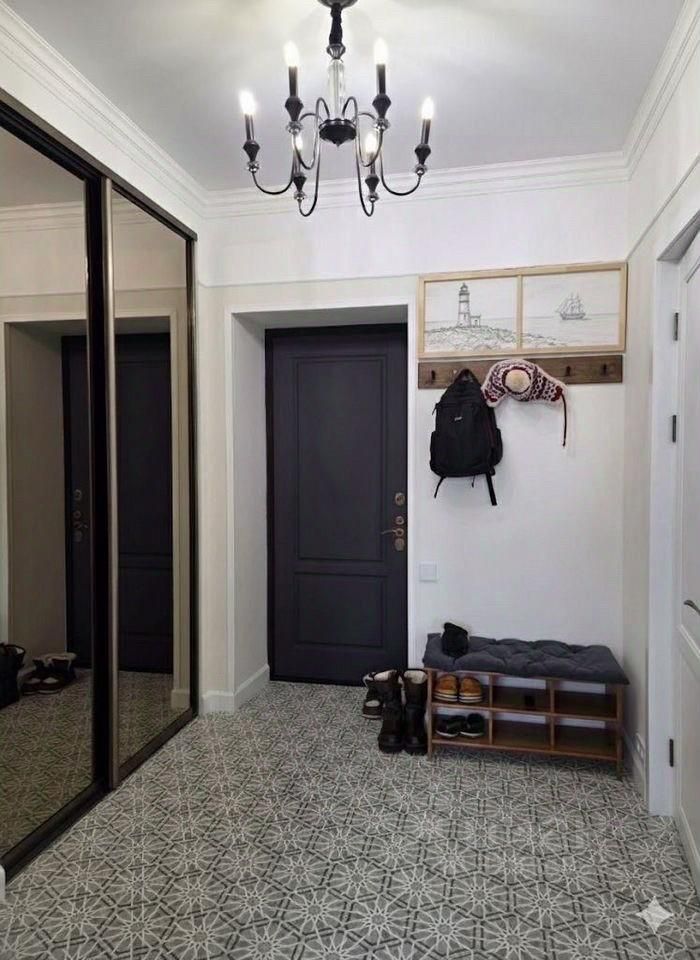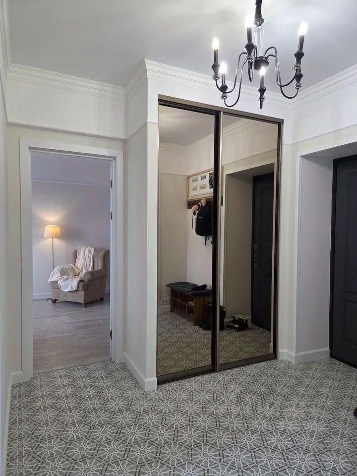 Просторная прихожая с вместительным шкафом внутри которого объемные антресоли, предусмотрены рейлинги для длинной и короткой верхней одежды а так же для самостоятельно использования детьми. Есть банкетка с местом для хранения ,для удобного переобувания и вешалка с крючками.