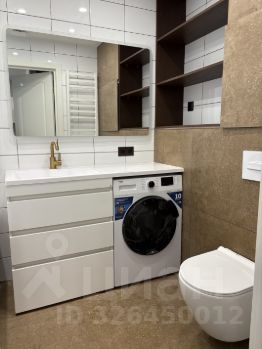Квартира полностью готова к проживанию. В ней есть вся необходимая мебель как на кухне, так и в комнате. Установлена современная техника: кондиционер, холодильник, посудомоечная машина, телевизор и стиральная машина.