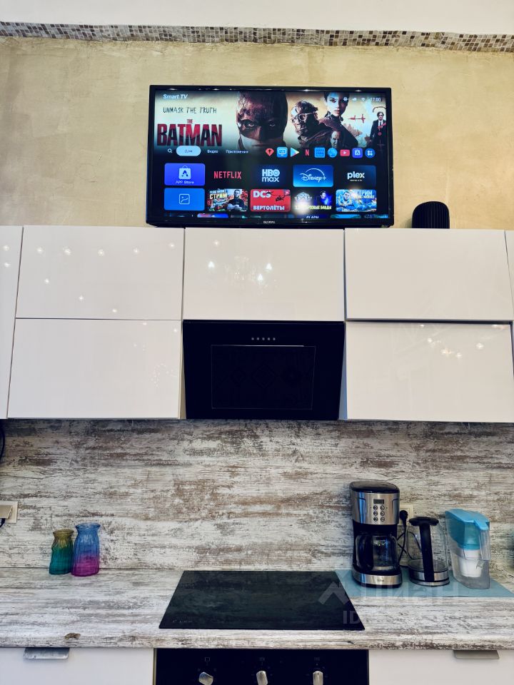 В гостиной телевизор с подпиской для просмотра фильмов, кофеварка и всем необходимым для приготовления еды.