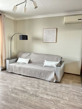 Квартира оснащена всем необходимым: стиральная машина, кондиционер, водонагреватель (на период летнего отключения воды), газовая плита, вытяжка, встроенный холодильник, раздельный санузел, большой остекленный балкон (с освещением и местом для хранения), 2 шкафа, комод и т.д. Очень тепло в зимний период, а для лета есть кондей. Телевизор по запросу.