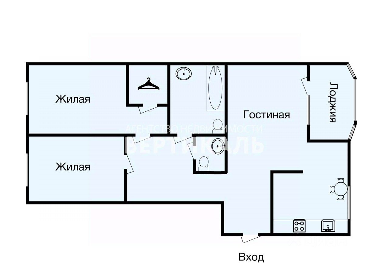 Два санузла — один с ванной.