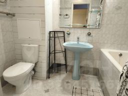 Квартира полностью готова к проживанию. Встроенная кухня укомплектована всей необходимой техникой. Есть балкон (из кухни). В комнате вместительный зеркальный шкаф-купе во всю стену, двуспальная кровать с ортопедическим матрасом, письменный стол, кондиционер и так по мелочи. Просторный совмещенный санузел. В прихожей - большой шкаф-купе. Введен интернет.