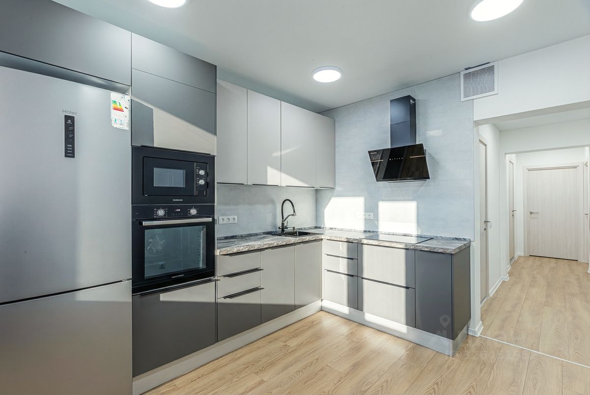 - Встроенная техника: духовой шкаф, посудомоечная машина, микроволновка, вытяжка.