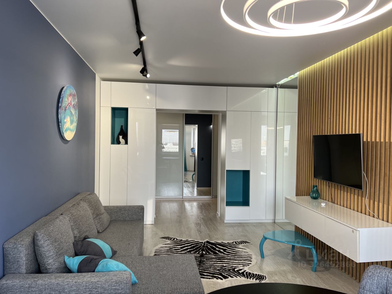 Просторная гостиная, с выходом в кухонную зону и коридор.