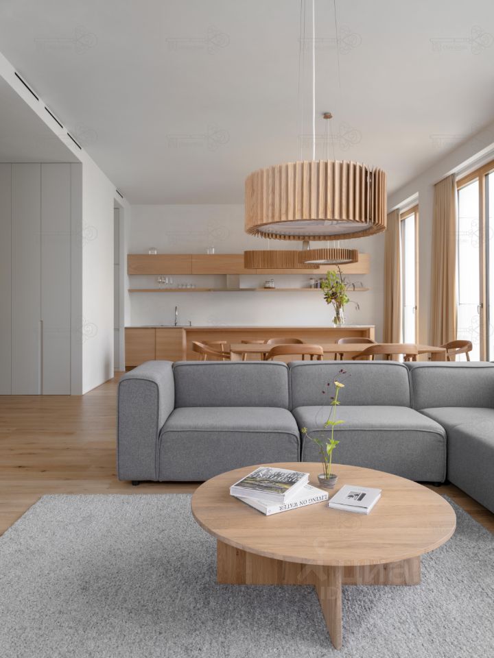 Функциональная планировка включает две изолированные спальни с гардеробными и санузлами, кабинет, кухню-гостиную.