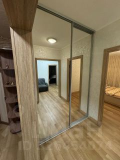 В прихожей установлен большой шкаф для верхней одежды с зеркалом.