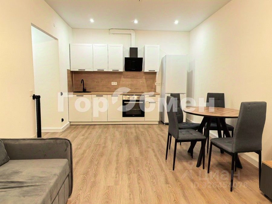 Квартира оснащена всей необходимой мебелью и бытовой техникой (электрическая варочная панель, электрический духовой шкаф, вытяжка, полноразмерный холодильник, стиральная машина).