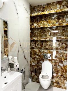 В квартире имеется вся необходимая техника и мебель: телевизор, холодильник, духовой шкаф, варочная панель, посудомоечная машина, микроволновая печь, кондиционеры, стиральная машина, видеодомофон. Просторная детская комната с гарнитуром и двухуровневой кроватью. Дополнительная мебель по согласованию с собственниками.