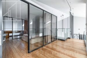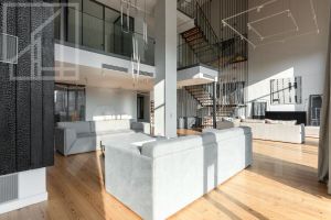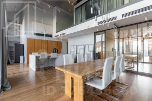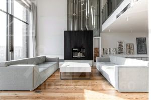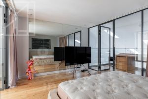 Первый уровень: кухня-столовая, гостиная, кабинет, гостевой санузел, постирочная. Второй уровень: спальня, ванная комната, гардеробная. Третий уровень: спальня, оборудованное рабочее место. Есть профессиональная система увлажнения, общедомовая система приточно-вытяжной вентиляции, локальная приточная вентиляция во все помещения, фанкойлы в каждой зоне. В гостиной находится настоящий камин. Пентхаус полностью меблирован и готов к оперативному заезду.