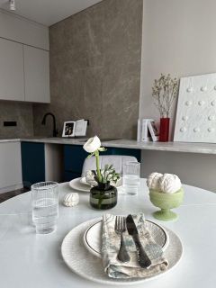 В квартире сделан современный евроремонт, что создаёт атмосферу уюта и комфорта. Светлые комнаты обставлены необходимой мебелью, а кухня оснащена всей техникой для удобного проживания: кондиционер, холодильник, посудомоечная и стиральная машины, телевизор. В ванной комнате установлена ванна, обеспечивающая возможность расслабиться после долгого дня.