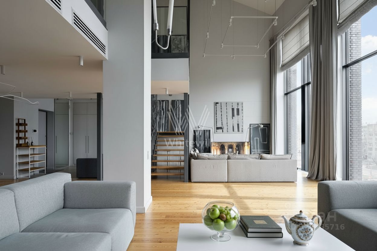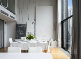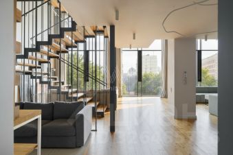 Главное об апартаментах: пятый этаж, 350 метров, первый уровень — кухня-столовая, гостиная, кабинет, гостевой санузел, постирочная; второй уровень — спальня, ванная комната, гардеробная; третий уровень — спальня, зона кабинета. Редкая планировка, высота потолков в гостиной — 9 метров. В стоимость входит одно парковочное место. Рассматриваются владельцы маленьких собак.