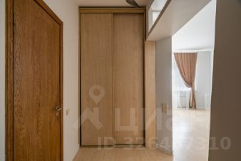 Функциональная планировка включает в себя кухню с выходом на балкон, гостиную, где много пространства, для того, чтобы выделить как рабочую зону, так и зону для отдыха. В прихожей есть дополнительный встроенный шкаф.