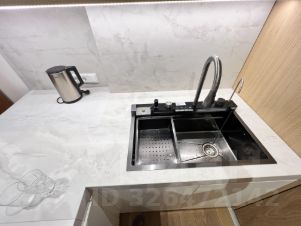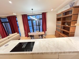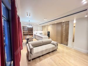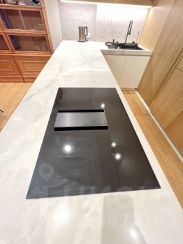 Квартира радует дизайнерским ремонтом и продуманной планировкой. Большая кухня гостиная площадью 40 кв. м обставлена современной мебелью и оснащена всей необходимой техникой премиального качества: холодильник asko, большая итальянская плита со встроенной вытяжкой, встроенный духовой шкаф и микроволновка Electrolux, посудомоечная машина. Кухня с кладовой комнатной, чтобы убирать всё лишнее с глаз, остававляя пространство без лишних деталей.