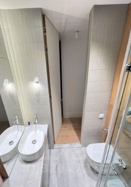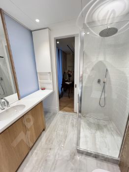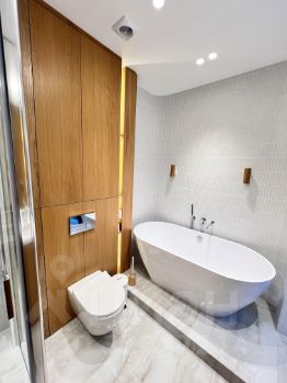 Температуру и доступ свежего воздуха можно регулировать управлением приточно вытяжной вентиляции. В квартире два совмещенных санузла, в одном из которых установлена ванна, а в другом — душевая кабина. Две лоджии с видом во двор станут отличным местом для отдыха, организации пространства для чаепитий или иного.