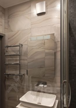 — в одном — просторная душевая 80х120 см, унитаз, зеркало, система хранения, полотенцесушитель;