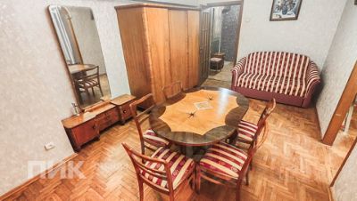 Окна выходят в тихий двор. В квартире выполнен ремонт в ретро стиле, в комнате уложен паркет, на стенах висят картины, раздельный санузел. Мебель из Италии, есть необходимая техника: холодильник, стиральная машина, тумба с дубовым шпоном с двойными дверцами, на ножках с изгибом, стулья мягкие классические деревянные с обивкой в бордовую полоску из