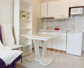 Квартира полностью готова к проживанию. Студия обставлена необходимой мебелью и оснащена техникой: холодильник, телевизор, стиральная машина, диван, шкаф и комоды.