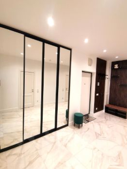 Кухня оснащена встроенной бытовой техникой: холодильник, посудомоечная машина, эл. варочная панель, вытяжка, микроволновая печь, духовка.