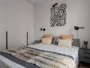Сдается впервые, с дизайнерским ремонтом евро-двухкомнатная квартира на длительный срок в современном монолитном доме 2024 года постройки, кухня-гостиная и изолированная комната, совмещенный санузел. Кухня площадью 10 м² оснащена необходимой мебелью и техникой: холодильник, варочная панель, духовой шкаф, посудомоечная машина, чайник, стол со стульями, диван, тумба, телевизор. В комнате прекрасная двуспальная кровать с матрасом, встроенный шкаф. Имеется два кондиционера.