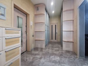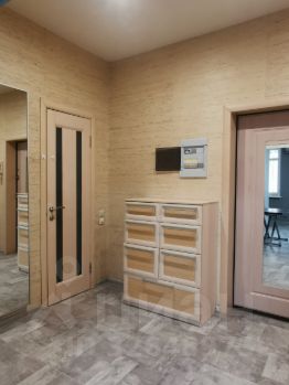В прихожей 2 шкафа-купе во всю стену, широкое зеркало в полный рост и зеркальная входная дверь.