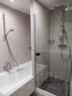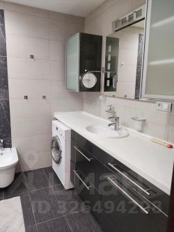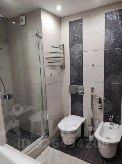 -- Ванная комната: большая совмещенная, душевая кабина + ванна, унитаз + биде, стиральная машина Miele, вместительные шкафы для хранения. Теплый пол.