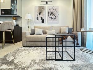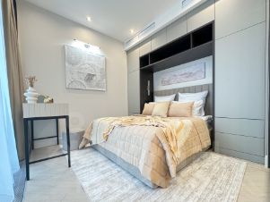 Современный дизайн. Квартира полностью меблирована, оснащена современным оборудованием.