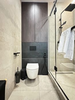 - Душевая кабина с подсветкой, санузел, стиральная машиной с функцией сушкой и большая зеркало с подсветкой;