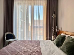 Квартира с дизайнерской отделкой на 8 этаже, полностью укомплектована мебелью и техникой, готовая к проживанию.