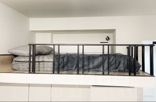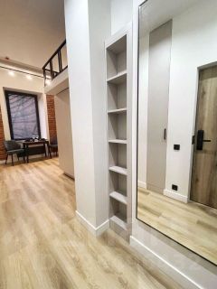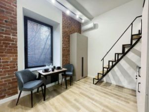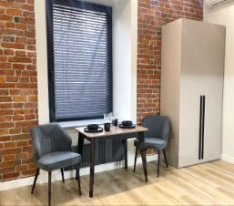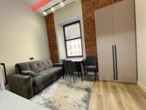 Общая площадь составляет 30 кв. м. Высокие потолки 4 метра создают ощущение простора, окно выходит в зеленый внутренний дворик, здесь будет тихо и спокойно после долгого дня.