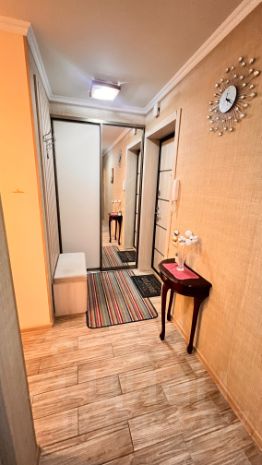 - Длинный функциональный коридор с зеркальным шкафом-купе и изолированным предбанником