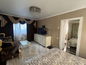 Квартира выполнена в дизайнерском стиле, что придаёт ей особый шарм и комфорт. Внутри есть всё необходимое для жизни: современная мебель как в комнате, так и на кухне, техника — кондиционер, холодильник и стиральная машина. Санузел совмещённый, оборудован ванной. Высота потолков составляет 2,64 метра, что создаёт ощущение простора.