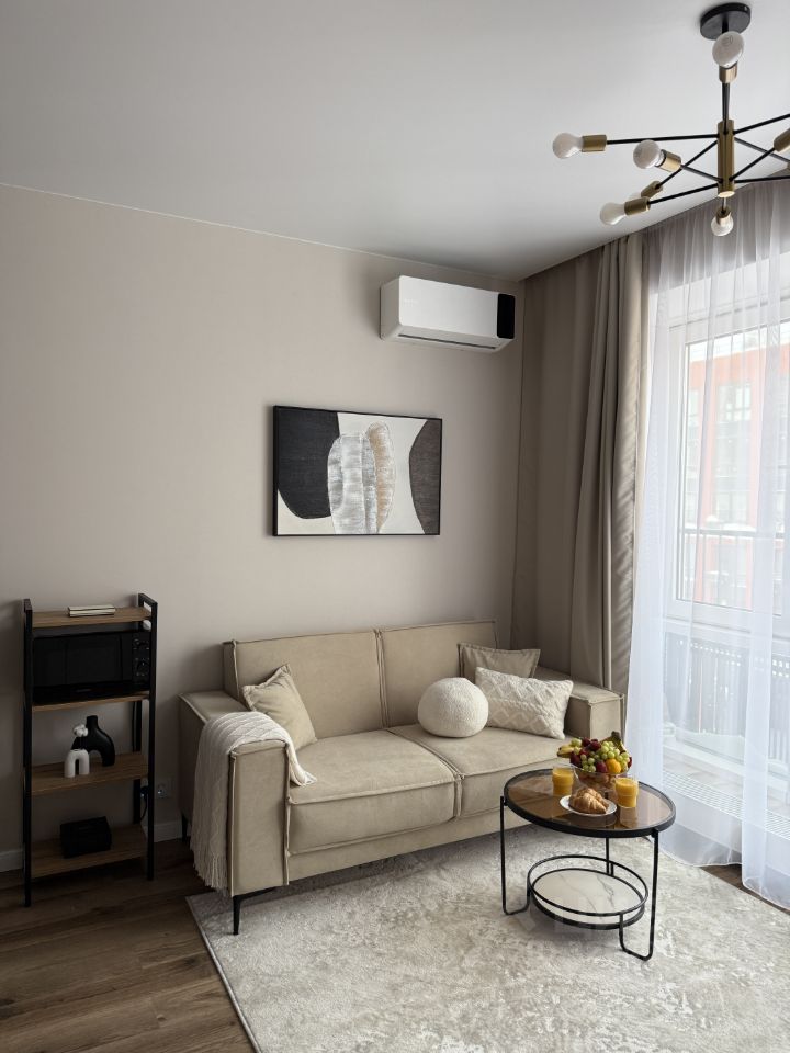 Апартаменты выполнены с большим вниманием к мелочам и комфорту будущих жильцов. Дизайн пространства сочетает монохнромные натуральные оттенки, избавляя от визуального шума и способствуя расслаблению.