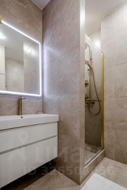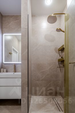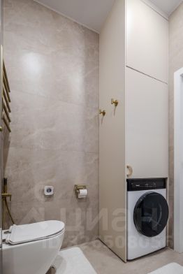 Санузел с современной сантехникой. Тёплые полы в санузле и прихожей (включается через приложение на телефоне), установлена система защиты от протечек.
