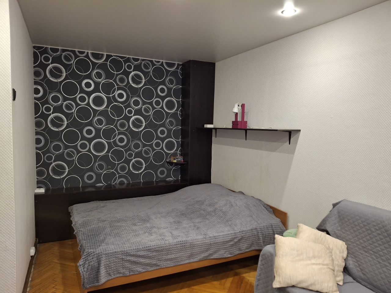 Квартира без балкона, окна выходят во двор. Дом оборудован камерами видеонаблюдения, домофоном и мусоропроводом. В квартире большая кухня и комната, совмещённый санузел. Сделан косметический ремонт. Есть вся необходимая мебель, техника и посуда для комфортного проживания. Проложен проводной интернет.