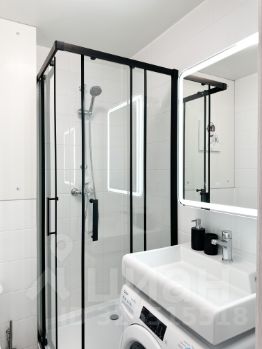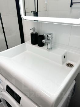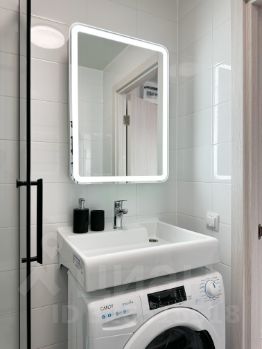 - cанузeл (душeвaя кабина, зеркaло с подсвeткoй, рaкoвина с тумбoй, cтиpaльная мaшинка)