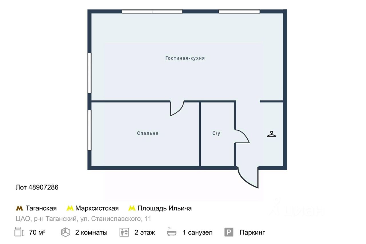 Арт. 48907286. Предлагается прекрасная 2-комнатная квартира. Выполнен качественный ремонт в европейском стиле. В наличии вся мебель и бытовая техника. Машиноместо в подземном паркинге можно дополнительно арендовать по желанию! Элитный жилой комплекс "Одиннадцать Станиславского", расположенный в исторической части Таганского района, в окружении памятников архитектуры. Квартира студия, состоящая из кухни-гостиной, спальни, санузла, гардеробной. Имеется машиноместо в подземном паркинге. Квартира полностью меблирована .В шаговой доступности находится набережная р. Яузы и Садовое кольцо. Развитая инфраструктура района : фитнес-центром с бассейном, детским парком со Сказочным театром, школами и детскими студиями, театрами, торговыми центрами и многочисленными ресторанами и кафе с кухнями разных стран мира.