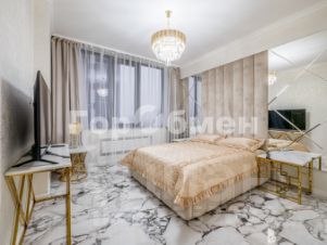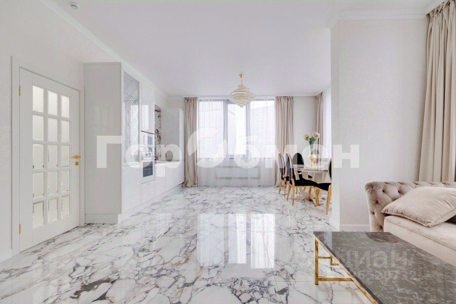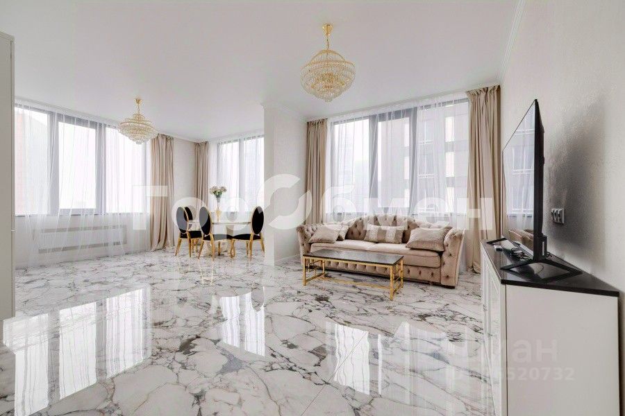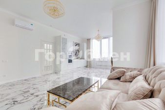 Выполнен высококачественный дизайнерский ремонт из дорогих материалов. Стены - стильная фактурная штукатурка с золотом ручной работы, пол выполнен из крупноформатного керамогранита под мрамор. Подоконники для окон в 3 метра выполнены из натурального камня кварцевые. Двери межкомнатные изготовлены из массива дерева. Премиальные хрустальные дизайнерские люстры производства Италия.
