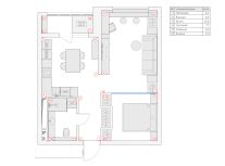 Общая площадь квартиры составляет 50 кв. м, из которых 20 кв. м — это просторная кухня. Квартира расположена на 4-м этаже 9-этажного дома. До метро Говорово всего 13 минут пешком.