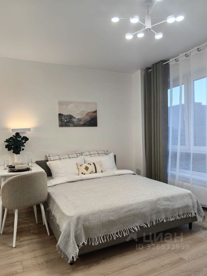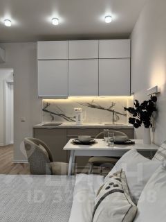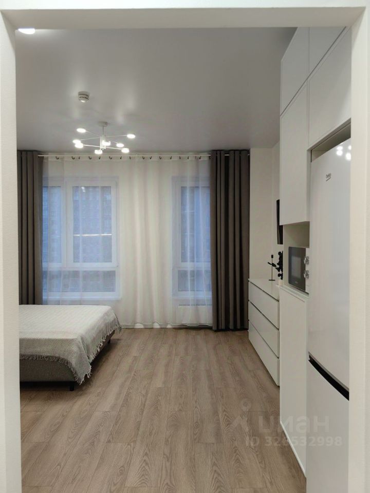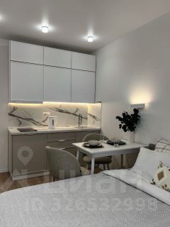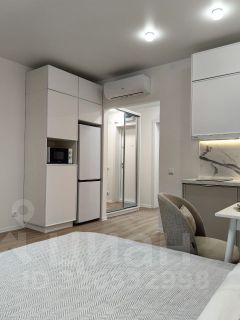 Студия с современным дизайнерским ремонтом, со всей необходимой техникой и мебелью для комфортного проживания: двуспальная кровать с ортопедическим матрасом, кондиционер, телевизор, кухонный гарнитур с варочной панелью, микроволновой печью и полноценным холодильником, гардеробная система и т.д. В ванной комнате- душевая кабина, электрополотенцесушитель и стиральная машина с функцией сушки.