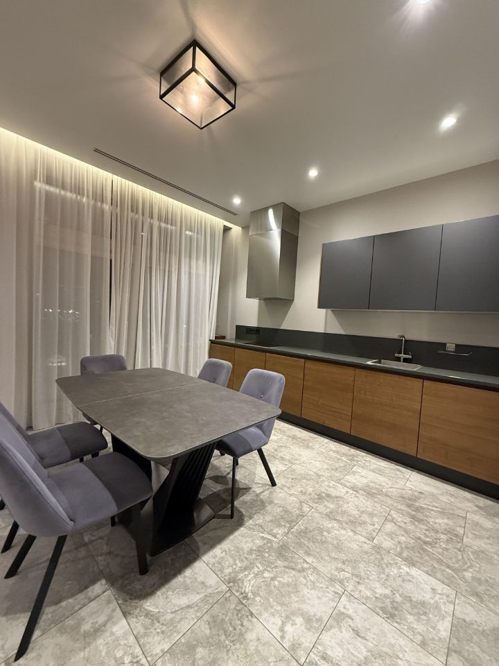 Общая площадь квартиры составляет 174 кв. м, а кухня — 18 кв. м. Высокие потолки , большие панорамные окна, приятные виды из окон на цент столицы наполняют квартиру светом и создают ощущение простора и комфорта. Инженерные системы топовых европейских производителей создают комфортную среду.