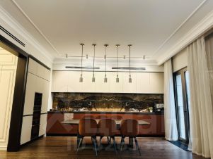 В квартире сделан стильный ремонт, она полностью меблирована и оснащена всей необходимой техникой для комфортного проживания. В вашем распоряжении будут кондиционер, холодильник, посудомоечная машина, телевизор и стиральная машина. В ванной комнате есть как ванна, так и душевая кабина, что позволяет выбирать между расслабляющими водными процедурами и быстрым освежающим душем.