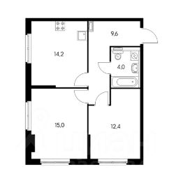 Удобная кухня-гостиная 14,2 кв. м., две отдельные комнаты и совмещенный санузел.