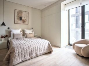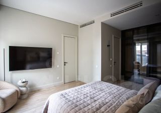 - МАСТЕР СПАЛЬНЯ со шкафами кровать, прикованная тумбы, кресло, телевизор и ГАРДЕРОБНАЯ, Ванная комната с санузлом и стиральной сушильной машиной!