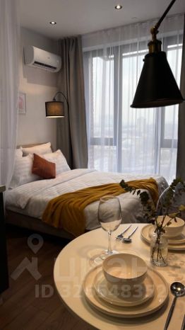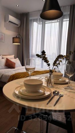 В студии есть все необходимое для комфортного проживания: кондиционер, холодильник, телевизор и стиральная машина. Мебель установлена как в комнате, так и на кухне. Ванная комната оборудована современной душевой кабиной. Окна выходят во двор, что обеспечивает тишину и спокойствие.