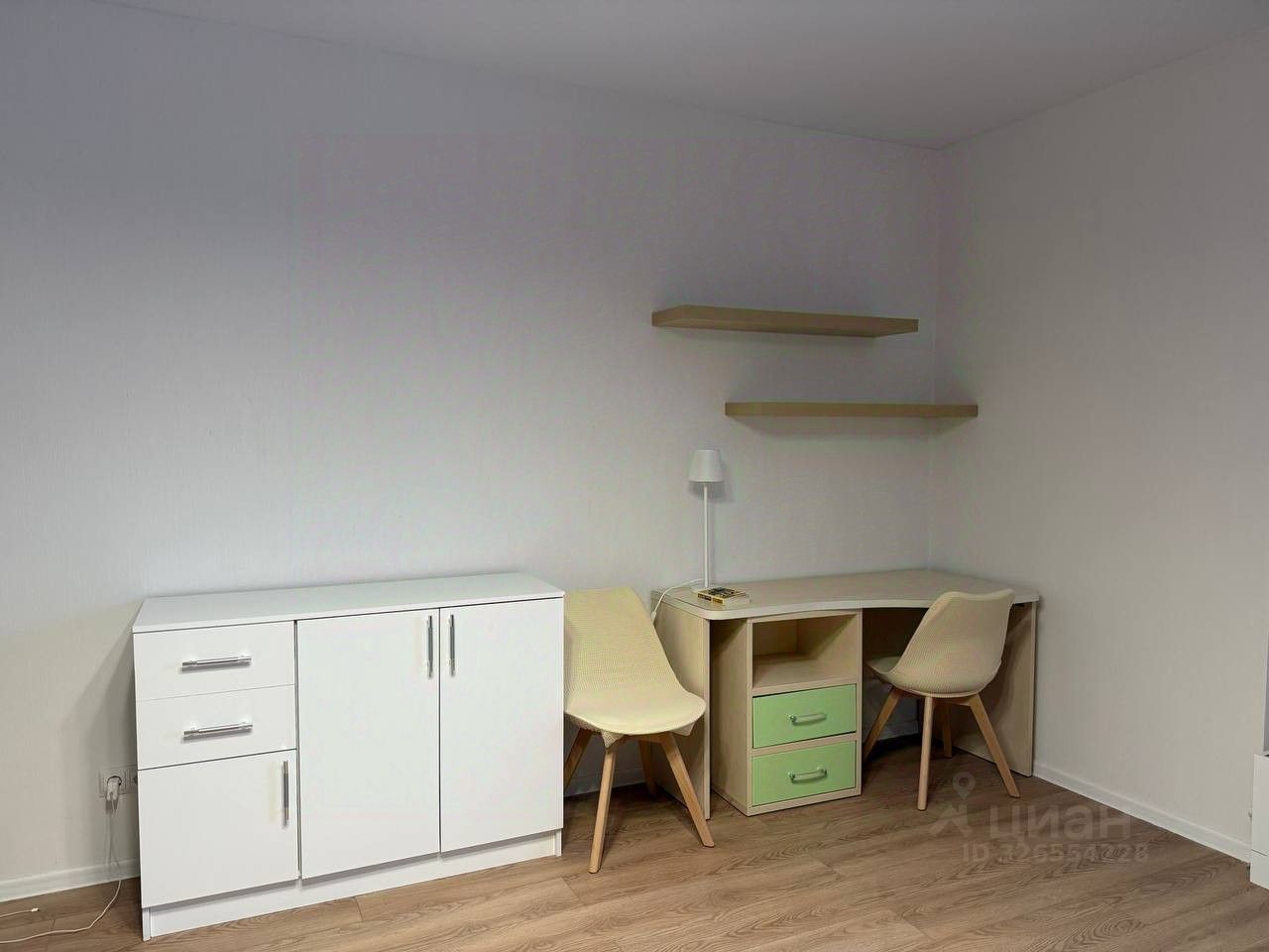 Оптимальный вариант для двух человек или семьи с детьми: в комнате большая двухъярусная кровать, письменный стол, диван, большой шкаф.