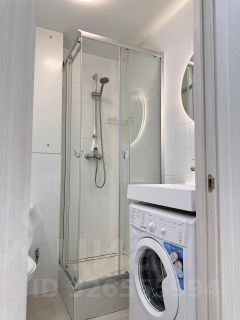 Студия укомплектована всей необходимой мебелью и техникой: кондиционер, встроенная кухня с варочной панелью, духовым шкафом, вытяжкой, холодильником и посудомоечной машиной, стиральная машина, телевизор, микроволновая печь, чайник. Установлена современная душевая система, предусмотрены вместительные системы хранения. В квартире есть комфортная кровать и диван.